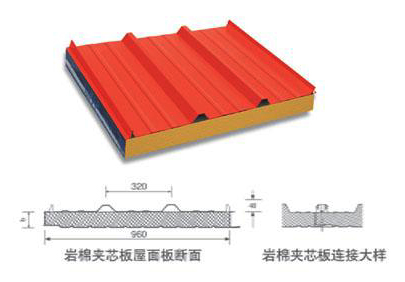 巖棉夾芯板是彩鋼板系列中耐火性能強的一種新型防火板材。是由巖石高爐鐵礦渣等經高溫熔化成絲,再經過固化成型。巖棉彩鋼板符合潔凈廠房二級消防要求,是室內吊頂、活動房建設理想的結構用裝飾板材。巖棉彩鋼夾芯板具有600℃的耐火性能,耐火等級達到不燃等級。